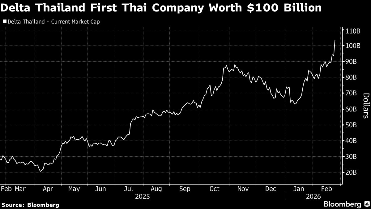Delta Electronics Thailand Pcl became the country’s first $100 billion company